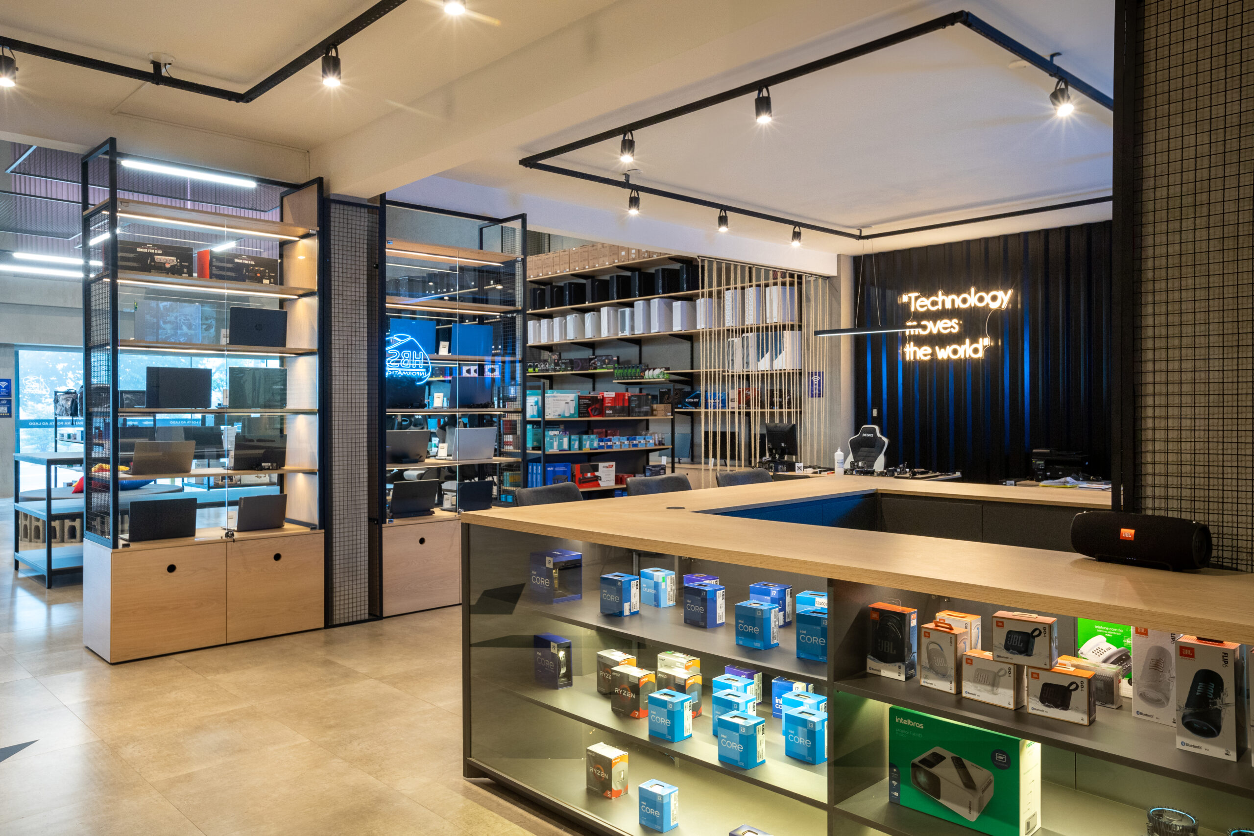 Planejamos, fabricamos e montamos o projeto completo de mobiliário comercial da sua loja em todo Brasil, aliando Aço e MDF.